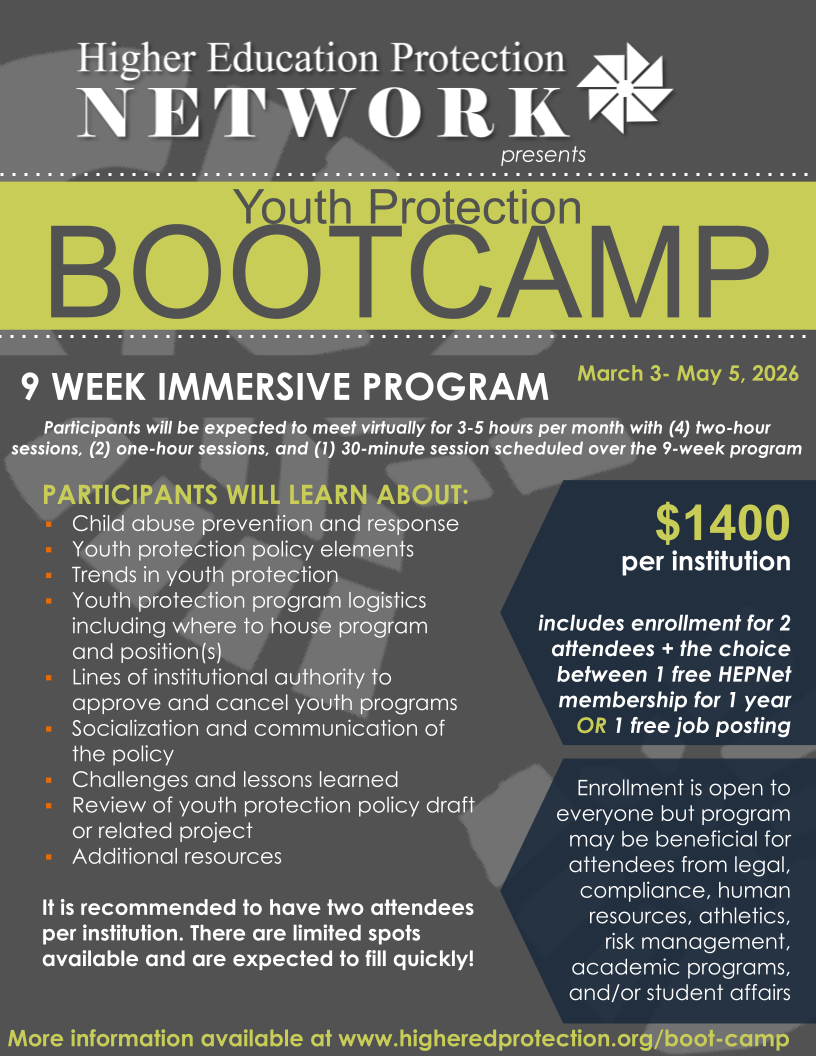 - In between the sessions on 4/21 and 5/5, participants will individually schedule office hours with a youth protection expert to review your Boot Camp project/goal
